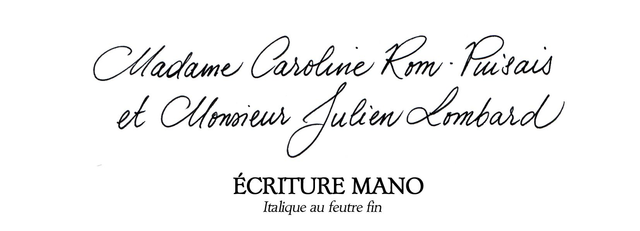 Calligraphie en écriture Mano, différents coloris, pour personnaliser les objets de la boutique (marque-page, carte, cyanotype...).